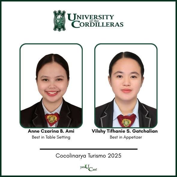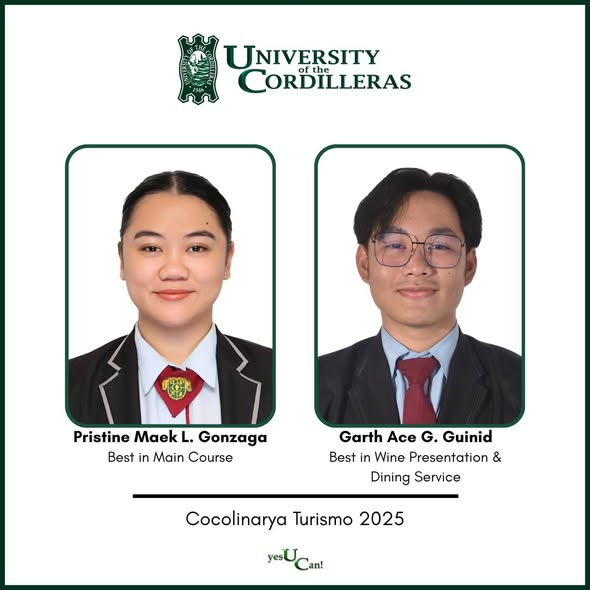 Representing the University of the Cordilleras, the team showcased outstanding professionalism, creativity, and technical masteryโskills that reflect the collegeโs strong commitment to industryโaligned training and excellence. Their exceptional performance earned not only the overall championship title but also a sweep of major special awards across key culinary and service categories.